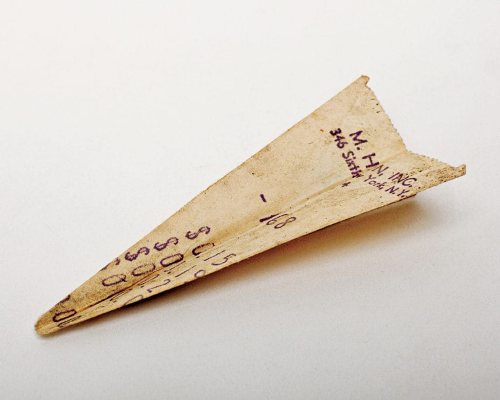 From 1961 to 1988, Harry Smith collected, labeled, and cataloged paper airplanes he found on the streets of New York City, where he lived most of his life. Smith was a renaissance man of the avant garde, an experimental filmmaker and Grammy-winning musicologist. The Getty Research Institute, which houses 229 linear feet of Smith’s collections in 340 boxes and four flat-file folders, called him a “polymath…collector of American vernacular art, music, and artifacts.”